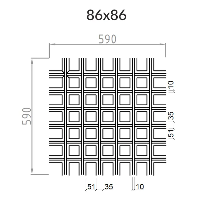 Подвесной потолок Грильято Пирамидальный ячейка 86х86 мм, высота 35 мм, цвет белый