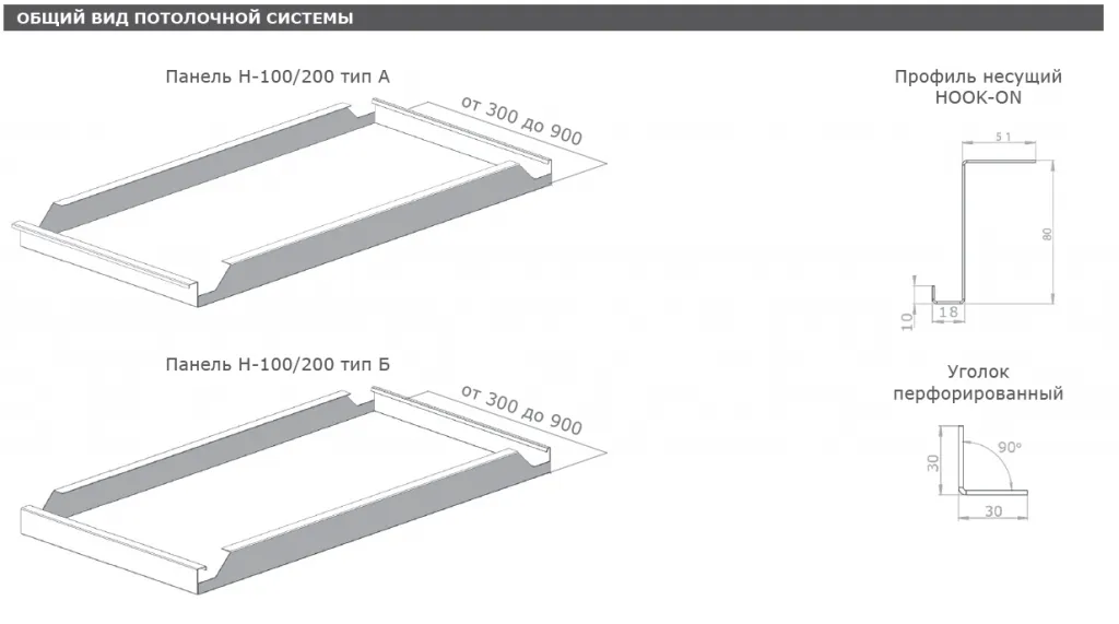 Потолочная система имеет несколько специализированных подвидов, применяемых в зависимости от специфики функциональной или эстетической задачи (коридорный потолок, потолки-фрагменты, противоударный потолок и т.п.) Различные виды перфорации и специальная акустическая подложка увеличивают коэффициент звукопоглощения и создают благоприятную акустическую среду в помещении.